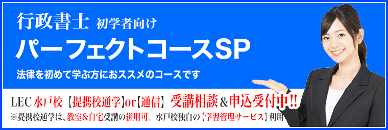 LECの行政書士講座は、法律を初めて学ぶ方におススメの「パーフェクトコースSP」や行政書士試験の学習が初めてという方を対象とした「パーフェクトコース」をはじめとした各種コースを取り揃えております。